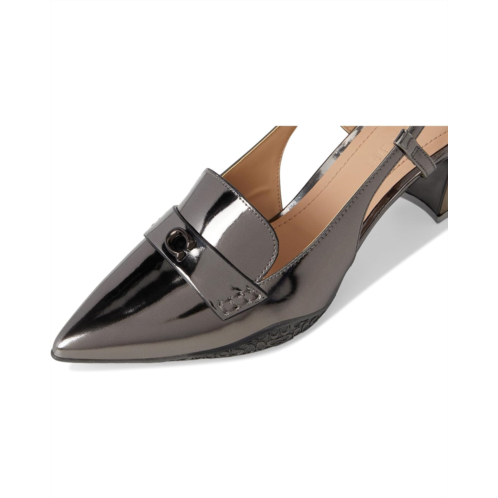 - Chic and sleek! The COACH Nikola Metallic Leather Hybrid Slingback features a smooth metallic leather upper in a pointed toe silhouette with an adjustable slingback buckle closure and a sculptural heel.
