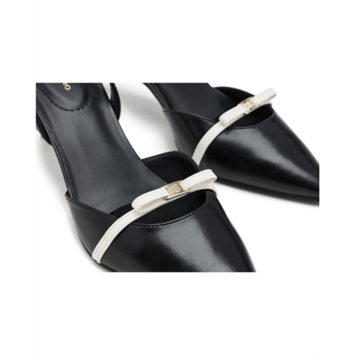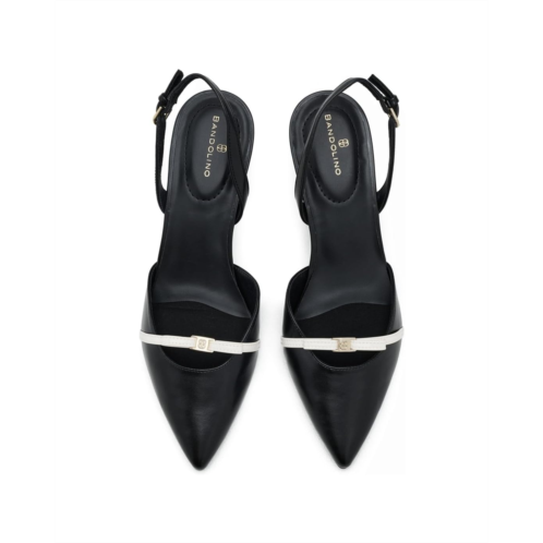 - The Bandolino Pracen dress pumps add instant style to any outfit. Featuring a slip-on silhouette, pointy toe and a mid stiletto heel, this pump is the perfect wardrobe staple! It comes crafted with a polyurethane upper with an adjustable backstrap & buckle closure, a polyester lining, and a cushioned insole.