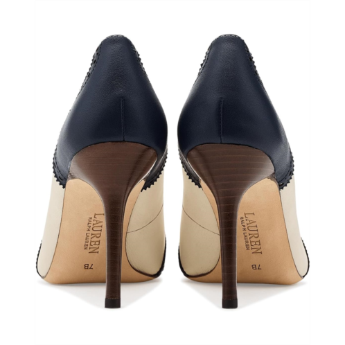 - Elevate your fashion game by complementing outfits with the Lauren Ralph Lauren Lynden Perforated Nappa Leather Pumps. Perforated detailing brings subtle texture and added sophistication to this slip-on style pump, which is characterized by its smart, pointed-toe silhouette rendered in Nappa leather. These come crafted with leather upper with stylish color-block design, leather lining, and a padded rubber insole.