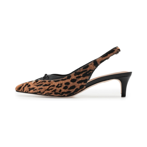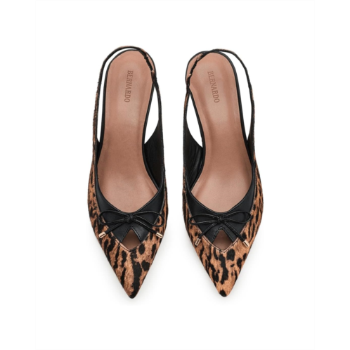 - The Bernardo Misha Haircalf slingback is where timeless tailoring meets modern femininity. Crafted with a luxe fur upper, this elevated pump brings rich texture to a sleek, sophisticated silhouette. Inside, smooth leather lining, insole, and outsole deliver breathable comfort and a refined feel with every step. The pointed toe elongates the leg, while the delicate leather bow detail centers a subtle, conservative cutout for just the right hint of allure. An adjustable buckle strap ensures a secure, customized fit, making it as practical as it is polished. Set on a classic stacked kitten heel, Misha offers graceful lift without sacrificing comfort.