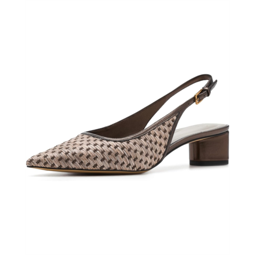 - Step into refined elegance styling the Franco Sarto A-Amelie 2 Slingback, a modern classic designed to elevate your everyday and after-hours looks. Crafted with a sleek textile upper, this pointed-toe silhouette delivers a sophisticated finish that feels instantly polished. Inside, smooth leather lining and a cushioned leather insole provide a luxe, comfortable feel that keeps you confident from morning meetings to evening plans. The leather and rubber outsole offers the perfect balance of durability and flexibility, giving you steady steps without sacrificing style. A chic buckle slingback closure ensures a secure, adjustable fit while adding a touch of timeless charm.