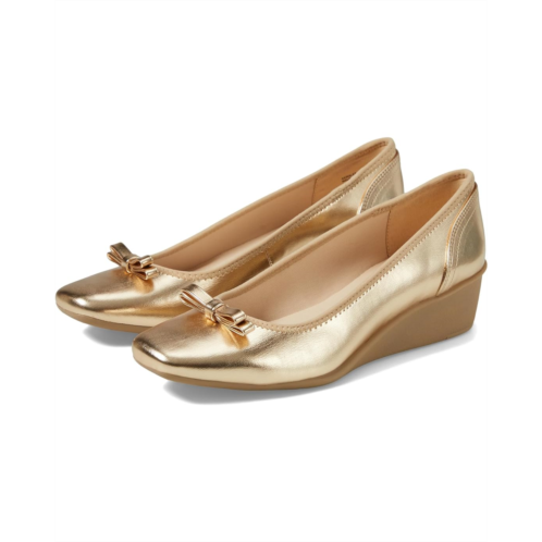 - Step out in sophistication by donning the Anne Klein Waldorf heels. The man-made upper is beautifully accented with a graceful bow embellishment, while the textile lining and insole ensure a cozy fit. Designed for lasting comfort, these pumps are perfect for all-day wear with their stylish wedge heels.