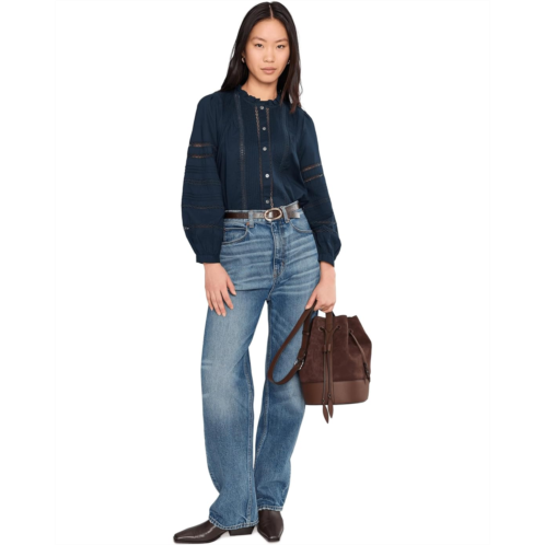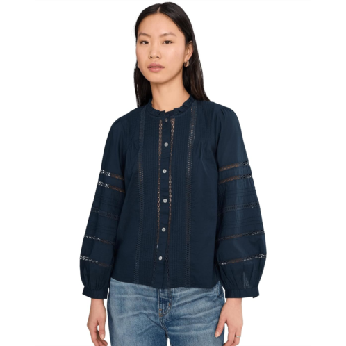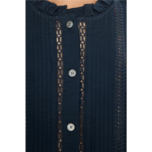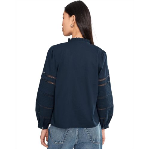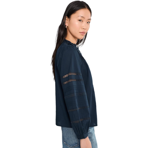 [US] Womens Madewell High-Neck Lace-Insert Pintuck Top