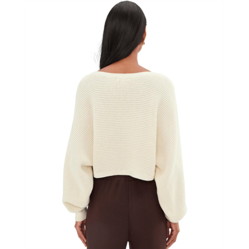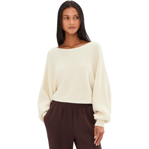 - Plie and pulse away, slip on the Ready For Barre Cropped Sweater by Beyond Yoga over your set for the studio or wear it as an everyday look to elevate any outfit with a dance-inspired twist. Designed with a textured waffle stitch, this sweater delivers breathable warmth with a luxe, lived-in feel you'll want to wear on repeat. The relaxed fit drapes beautifully, giving you easy movement and an effortlessly flattering silhouette, while the pull-on style keeps things simple and fuss-free. A wide bateau neckline adds a soft, feminine touch, perfectly framing the shoulders for that off-duty dancer aesthetic. The cropped length hits just right, ideal for pairing with high-waisted leggings or barre tights, while long sleeves provide cozy coverage without weighing you down.