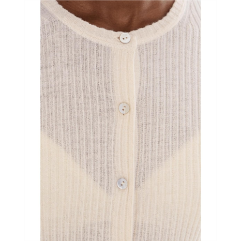 - Luxurious and lightweight ribbed cashmere-silk takes the classic Vince Ribbed cardigan to new heights. It's thoughtfully finished with Agoya shell buttons and ribbed trim. It features a crew neckline, long sleeves, and a buttoned front closure.