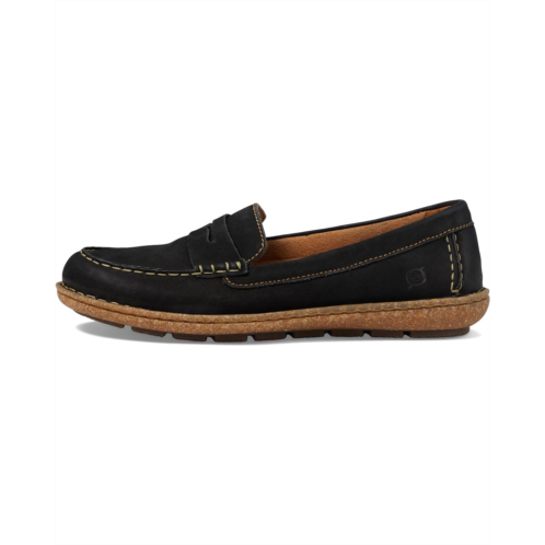 - The casual styling of the Boern Nerina slip-on loafer brings supreme comfort throughout the day. The soft nubuck leather upper features contrast stitching, a classic moc toe silhouette, and a penny strap at the vamp.