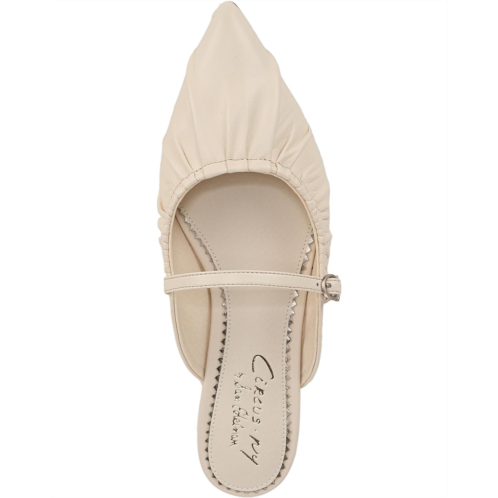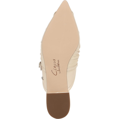- Mark your dignified presence no matter where you go wearing the Circus by Sam Edelman Larissah! Featuring a timeless pointed toe updated with intricate ruching and slightly elevated by a supportive stacked heel, these backless shoes offer you a flattering look from day to night. With the adjustable buckle closure on the instep strap, the shoes deliver a secure fit.