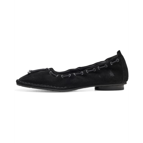 - The FLY LONDON BAPI264FLY Ballet is stylishly designed in a squared-toe silhouette with a soft leather upper, beautifully detailed with laces trimming at the top line. The slip-on style ballet features a polyester lining, a heel-to-toe cushioned foam insole, and a slight block heel for added style.