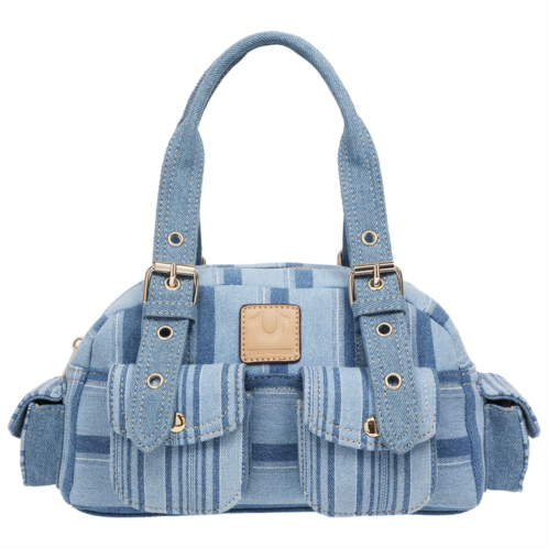 [US] True Religion multi stripe soft satchel denim mini handbag with utility pockets