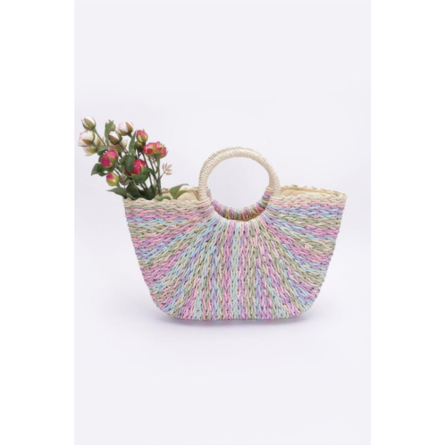 [US] FASHNZFAB faux straw multi color round handle tote bag