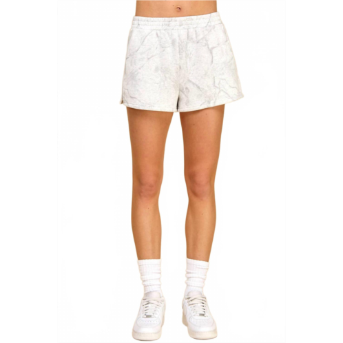 Tuck your favorite tee into these high-waist shorts for a more casual-cool feel.Embrace casual comfort with the Camouflage Print High Waisted Sweat Short by TCEC, designed for trendsetting minimalists. With a stylish grey camouflage pattern, these shorts feature an elastic waistband, convenient side pockets, and small slits for added flair. Made in China, they are crafted from a soft cotton blend of 50% Cotton, 49.5% Polyester, and 0.5% Viscose. Perfect for summer vacations, these sweat shorts are an easy pull-on style ideal for laid-back outings. Model is wearing a size small (5'9.5' height, 34' bust, 25' waist, 35' hip).