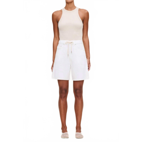 Jean shorts so versatile, you can literally wear them with anything.Embrace effortless style with the Taylor Drawstring Short by DL1961, crafted from a soft, lightweight denim in a chic white hue. These high-rise shorts feature a relaxed fit with a 12' rise, 7' inseam, and 23' leg opening, complete with a drawstring detail and silver hardware. Made from a durable cotton blend (69% cotton, 31% tencel), these shorts showcase tonal stitching and a clean hem for a polished look. Closure - Zip closure. Care - Machine wash and tumble dry. Perfect for minimalist summer vacations.