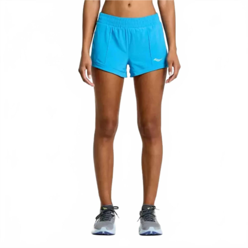 High-waist is here to stay and we especially love this style short.Elevate your active wardrobe with the Saucony Outpace 3” Women's Shorts, a perfect choice for summer workouts or vacations. These shorts feature a pull-on closure with a comfort knit waistband and an adjustable internal infinity drawcord for a customized fit. Made from 86% recycled polyester and 14% elastane, they offer a silky-smooth, 4-way stretch material that ensures lightweight, cling-free comfort. The design includes convenient storage options like a zippered back pocket and perforated panels for enhanced breathability, making them ideal for any activity.
