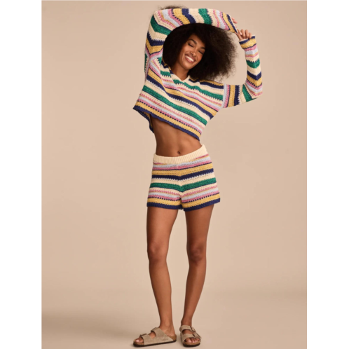From festivals to sunny day plans, this striped crochet short is a comfy and cute choice for any day of the week. Pair with our crochet Baja hoodie, crop tops and more to complete the _~fit.Ribbed waist. 3' inseam