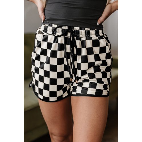 [US] TRUEDAMES black checkered drawstring elastic waist casual shorts