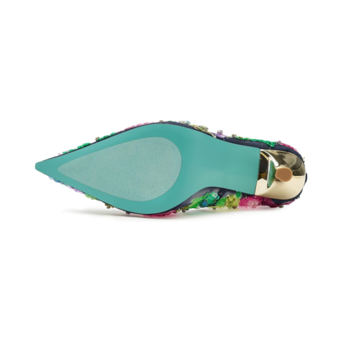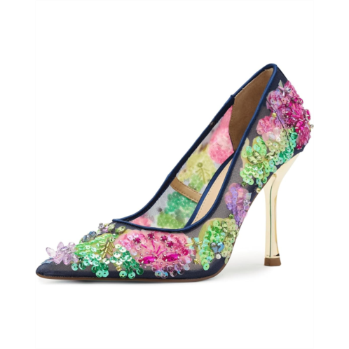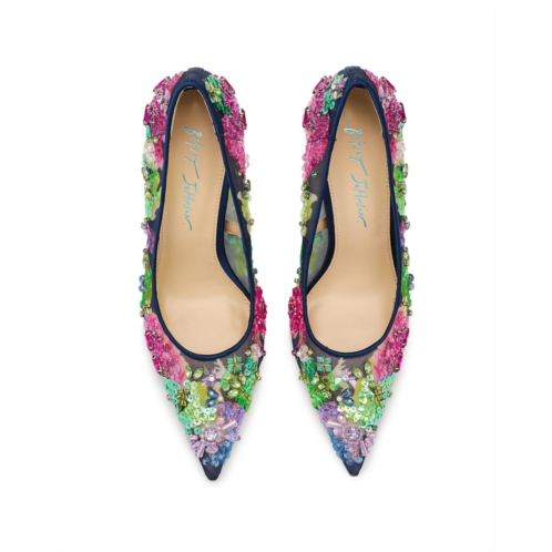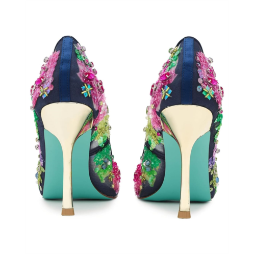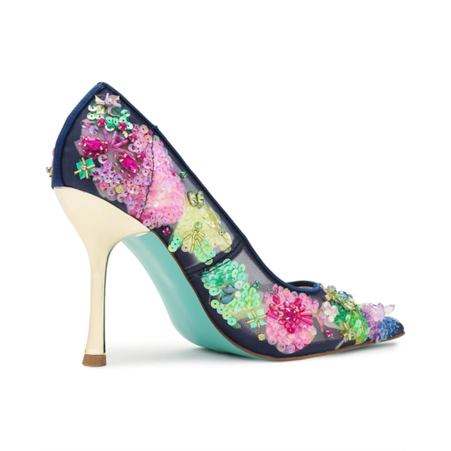 - Unleash your inner diva with the Blue by Betsey Johnson Netta-a floral-embellished high heel that's basically a party on your feet. Covered in shimmering sequins, this stunner brings just the right amount of sparkle and sass to any night out. The slip-on style pumps are crafted with a polyvinyl chloride upper. polyurethane lining, and a polyurethane insole. The elegant silhouette keeps things sophisticated while the playful details remind everyone you're here to have fun. Because why blend in when you can absolutely dazzle?