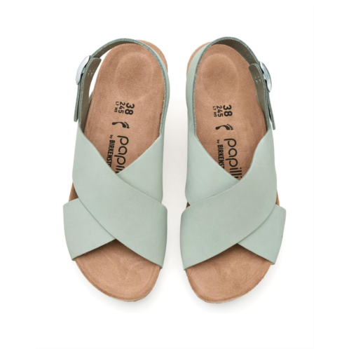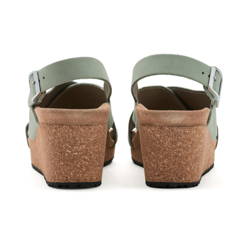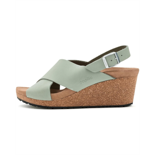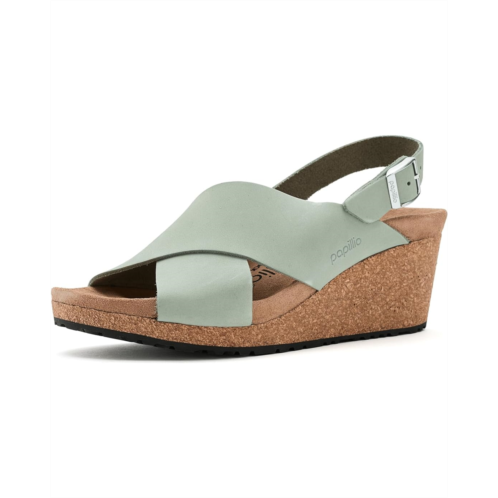 - Introducing the Birkenstock Papillio By Birkenstock Samira Wedge - Nubuck Leather! Stay comfortable and stylish with a lightweight, contoured cork-latex footbed that promotes proper pressure distribution. The delicate circular buckle is an elegant eye-catcher to dress up any outfit. The upper is made from high-quality, nubuck leather.