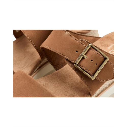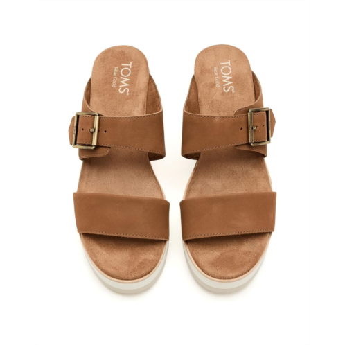 - Step into statement-making comfort styling the TOMS Diana Mule Buckle, your new go-to for instant height and everyday ease. Designed as a mid-height platform wedge mule with a sleek buckle strap closure, this silhouette blends fashion-forward flair with practical comfort. The durable PP upper pairs seamlessly with a soft polyester lining and insole, delivering a smooth, breathable feel from morning coffee runs to sunset strolls. Underfoot, custom CloudBound foam insoles cushion every step, offering all-day comfort and responsive support you'll truly feel. The rope-wrapped lightweight midsole adds artisanal texture and a summery vibe, while the Ethylene Vinyl Acetate outsole with sawtooth detailing ensures reliable traction and stability. With its flattering wedge height and easy slip-on mule design, the Diana Mule Buckle effortlessly elevates dresses, denim, and everything in between.