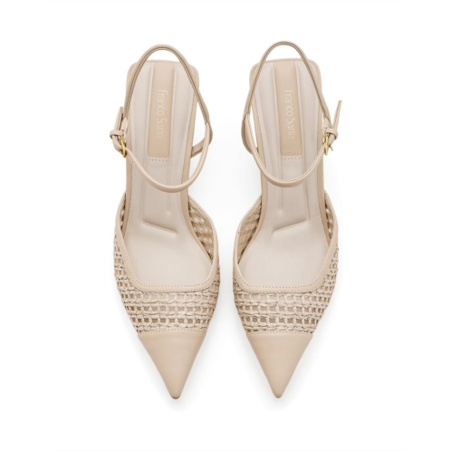 - The Franco Sarto Cherie Strappy sandals are heeled sandals that are perfect to pair with different outfits and styles. Their man-made insole and lining provide added comfort. The leather upper features an adjustable ankle strap and a pointed toe shape. Make your style statement with these leather heels.