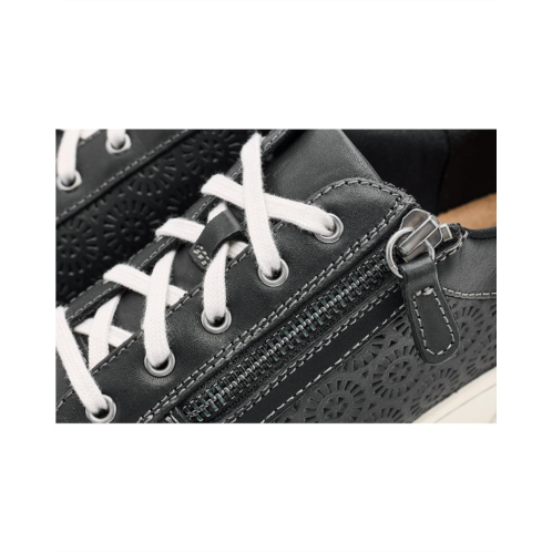 - Durable leather upper with laser-cut patterns.