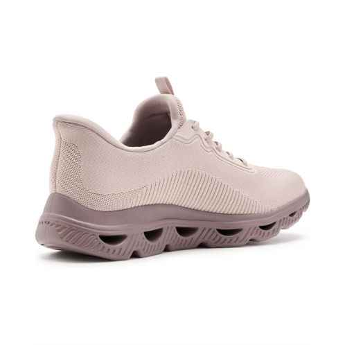 - Step into style and comfort in the BOBS from SKECHERS Hands Free Slip-Ins Bobs Arc Waves shoes. These low-top sneakers feature an engineered knit mesh upper with bungee stretch laces and Glide Step and Hands Free Slip-Ins technology for an easy fit. Made with 100% vegan materials, they are designed with a Skechers Memory Foam footbed and rubber insole for cushioned comfort. Machine washable and durable, these lace-up shoes are a great choice for everyday wear.