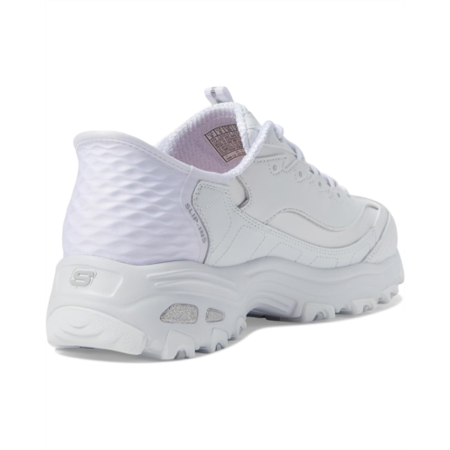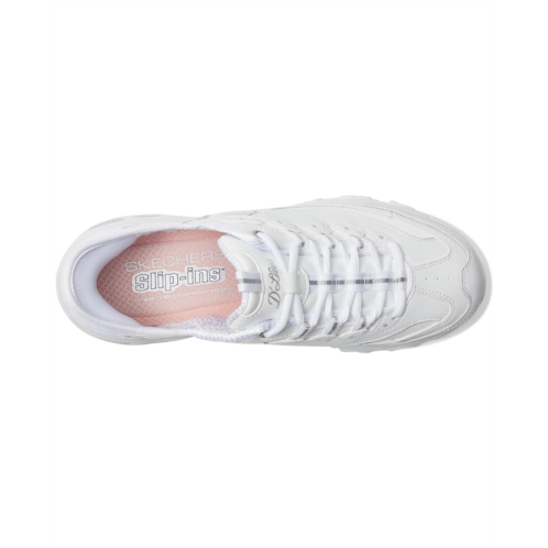 - Perfect for everyday use, the Skechers D'Lites New Scene Hands Free Slip - Ins reign supreme in comfort and style. These timeless iconic sneakers boast a contemporary upgrade and feature a smooth genuine leather and quarter webbing mesh upper with a classic lace-up closure, offering a snug fit. The shoes are integrated with Skechers Air-Cooled Memory Foam cushioned insole that makes every stride comfortable and an exclusive Heel Pillow that holds your foot securely in place.