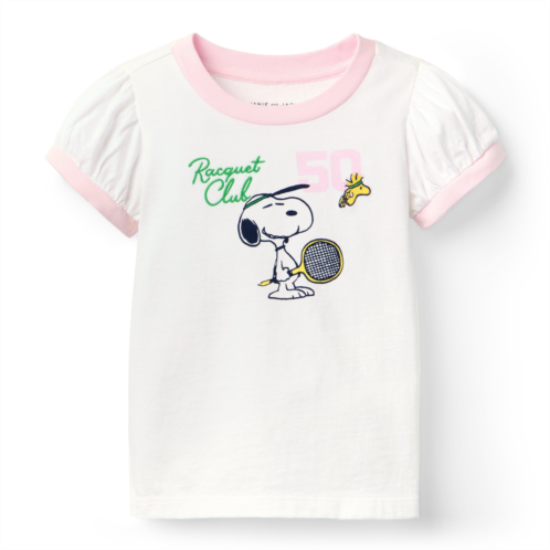 - Game, set, match in our pure cotton tee featuring a Snoopy tennis graphic with embroidered details. Plus, the perfect puff sleeves and contrast trim.