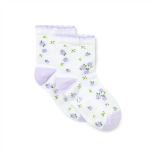 - First steps blossom with our sock featuring intarsia-knit florals and a scalloped cuff. Made in a soft and stretchy cotton-nylon blend for all-day comfort.