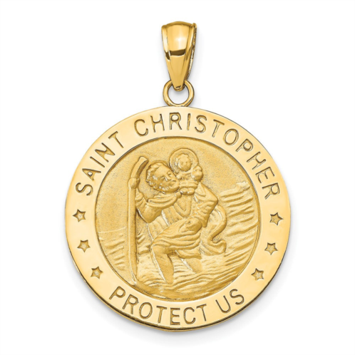 [US] Diamond2Deal 14k yellow gold and satin solid saint christopher medal round pendant