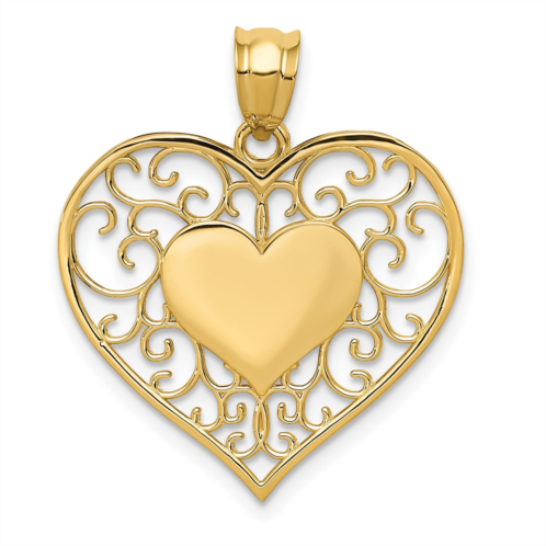 [US] Diamond2Deal 14k yellow gold polished filigree heart pendant