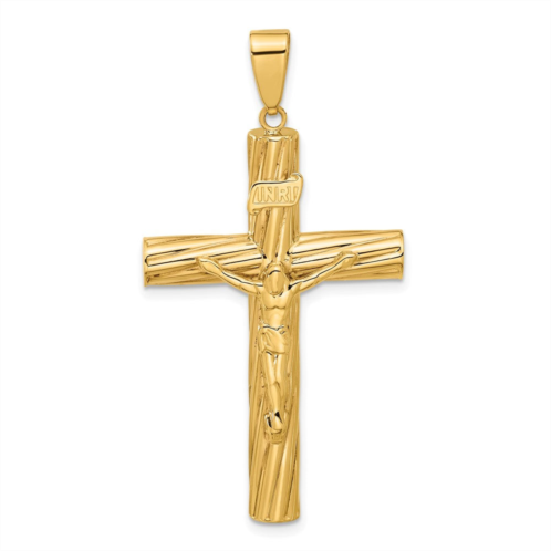 [US] Diamond2Deal 14k yellow gold polished textured crucifix pendant