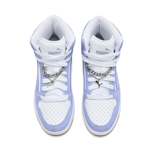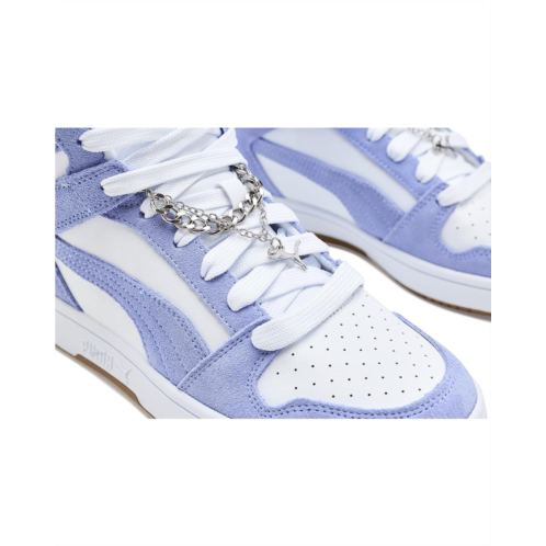 - Introducing the PUMA Rebound Layup Spring Bling Mid Shoes! Drawing inspiration from basketball sneakers of the '80s, these PUMA kicks take alley-oop comfort and style to the next level. Available in a range of versatile designs, whether you go for high-top, mid-, or low-cut, these sneakers are PUMA classics that you'll want in your wardrobe forever. Utilizes PUMA's SoftFoam+, a step-in comfort sockliner designed to provide soft cushioning thanks to its extra-thick heel. The synthetic leather upper, perforations on the vamp, and PUMA formstrip branding create an iconic basketball look. The shoelace chains with a PUMA cat charm add a unique and stylish touch to make these shoes stand out. Features PUMA branding details that add a touch of authenticity and style to your footwear collection.