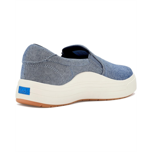 - The Keds Park Slip-On sneaker rocks the perfect balance of comfort and style. his pair features a chambray upper set atop a thick platform midsole and flexible yet lightweight rubber sole. The BlissArch footbed provides heel and arch support to keep you feeling your best anywhere you go. Engineered for a feel-good fit, this podiatrist-approved shoe promotes joint alignment while delivering steady heel support and comfortable arch support in every step. Crafted from Chambray upper, and textile lining, this pair of shoes features round toe, slip-on style, platform heel, and brand detailing on the footbed, and sides.