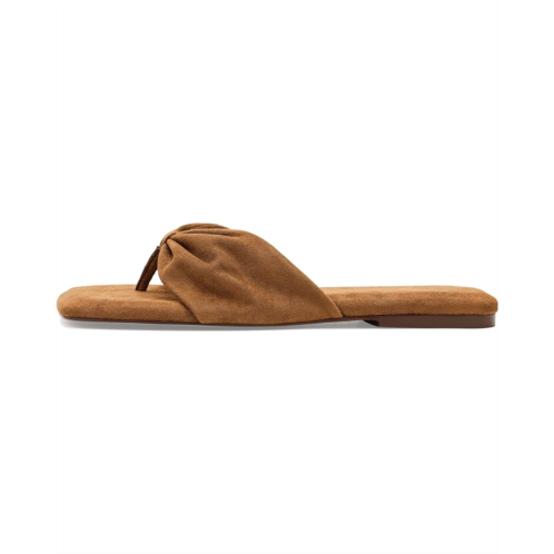 - Designed for comfort and charm, these Free People Tia Ruched Vegan Suede Sandals deliver an airy feel with a sophisticated finish. Crafted from suede upper, manmade lining, and insole, this pair of sandals features open square toe, ruched uppers, backless style, and slip-on thong sandal.