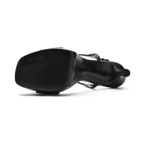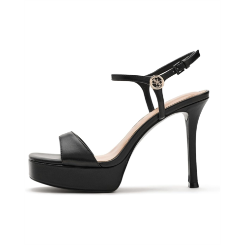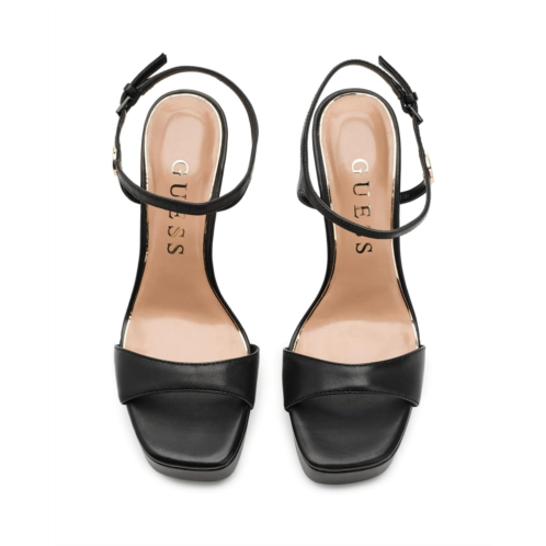 - Raise the glam quotient by pairing your party-wear outfits with the GUESS Hendora Heels. The leather upper comes with an ankle strap & buckle closure for adjustability and metal logo hardware detail that adds a touch of authenticity. The open squared-toe heels are beautifully detailed with a stiletto heel and feature a man-made insole for comfort.