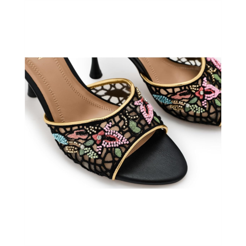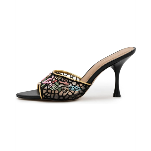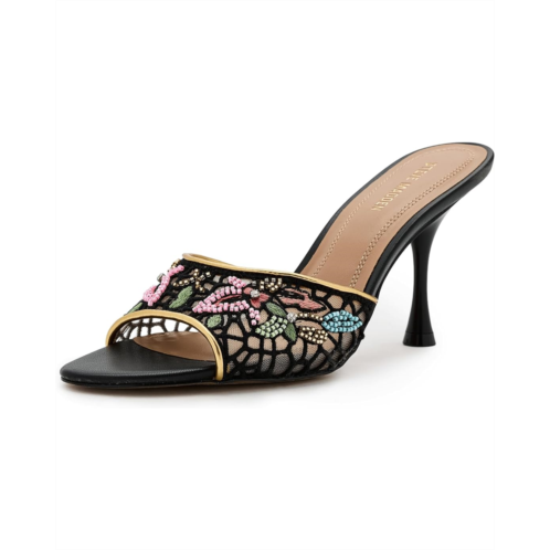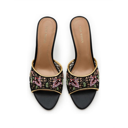 - The Steve Madden Santi is a statement piece that blends artistry with modern elegance. Designed with intricate embroidery across the strap, it brings a touch of texture and sophistication to the silhouette. The open round toe adds a contemporary edge, while the sleek stiletto heel delivers height and confidence.