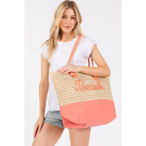 [US] FASHNZFAB womens color sewn rope beach letter and strap crochet fabric tote