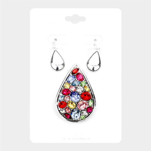 [US] FASHNZFAB multi stone teardrop magnetic pendant set - antique silver multi
