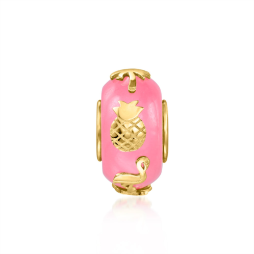 Ross-Simons is always looking for new ways to reinvent essential jewelry styles. Tell your style story with a custom mix of on-trend bead charms! Our chic pieces nestle side by side to create countless different looks, all designed by you. Relax into the tropical vibe of our bright rondellekorea charm, featuring a 13x7mm hibiscus-pink jade bead overlaid with 18kt yellow gold over sterling silver pineapple, flamingo and palm tree designs. Slide your pick onto your favorite chain, or one of our compatible necklaces, sold separately. Pink jade tropical bead charm. Each Ross-Simons item arrives in a fine jewelry presentation box. Shop Ross-Simons jewelry risk-free as all items include a 30-day, 100% money-back guarantee.