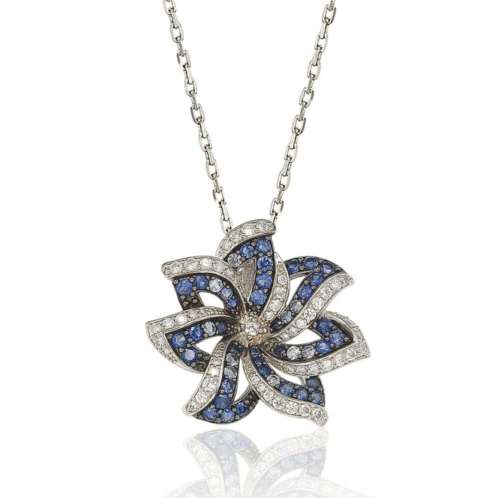 [US] Suzy Levian sapphire and diamond accent in sterling silver petite flower pendant