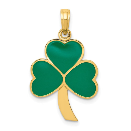 [US] Diamond2Deal 14k yellow gold green enameled shamrock pendant