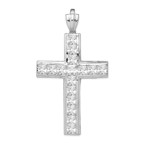 [US] Diamond2Deal sterling silver rhodium-plated cubic zirconia cross pendant