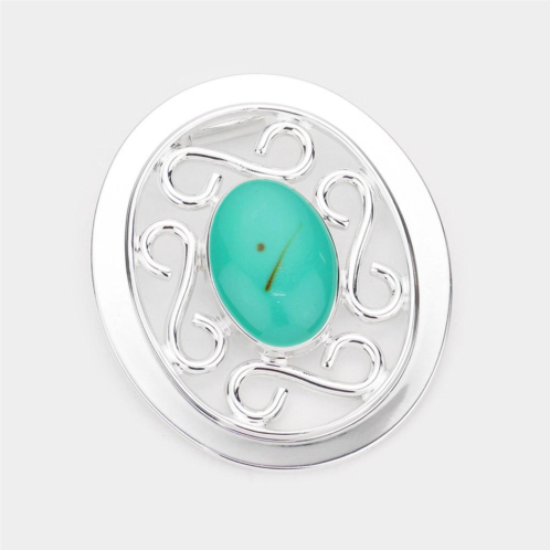 [US] FASHNZFAB turquoise accented metal oval pendant - turquoise