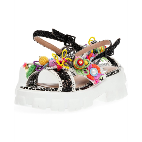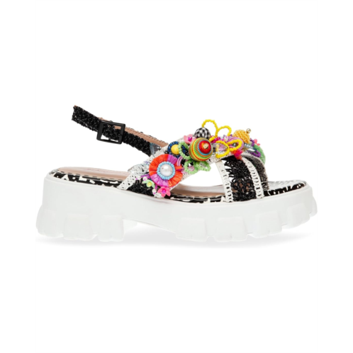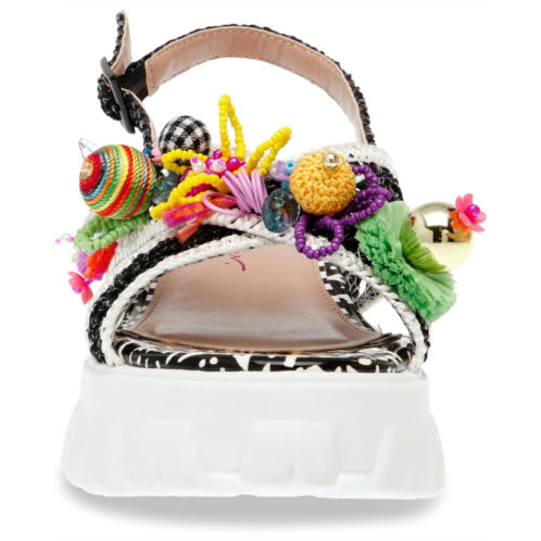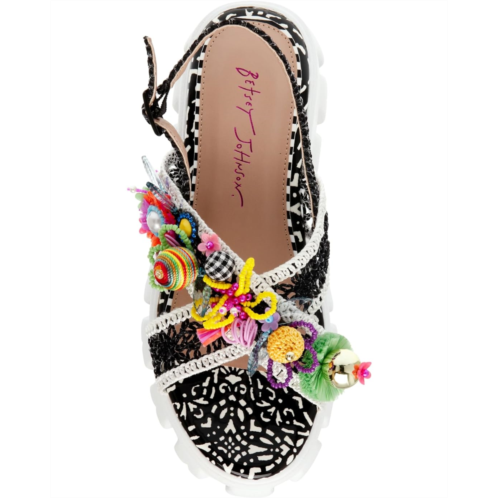 - Walk in the sunshine wearing the trendy Blue by Betsey Johnson Graysen. Crafted from macrame upper, synthetic lining, and insole, this pair of platform sandals features crisscross strap on the upper with cute accessories detailing, ankle strap buckle closure, low heel, and brand detailing on the footbed.
