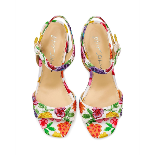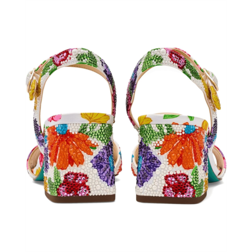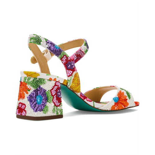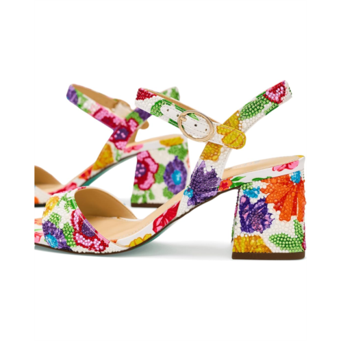 - The Blue by Betsey Johnson Tamy sandals are playful, feminine dress sandals that mix fun floral motifs and embellishments with an elegant silhouette. Crafted from polyurethane upper, lining, and rubber insole, these sandals combine fashion details with wearability.