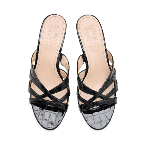 - Architectural lines define this Naturalizer 27 Edit Tuesday sculpted slide sandal, elevating every look with modern sophistication. Crisscross straps set the stage for confident movement, powered by our signature Contour+ Comfort technology. Crafted from leather upper, polyurethane lining, and foam insole, this pair of sandals features open round toe, classic strappy upper, stiletto heel, and brand detailing on the footbed.