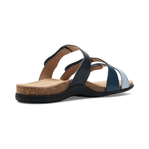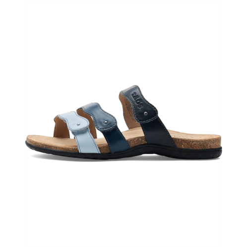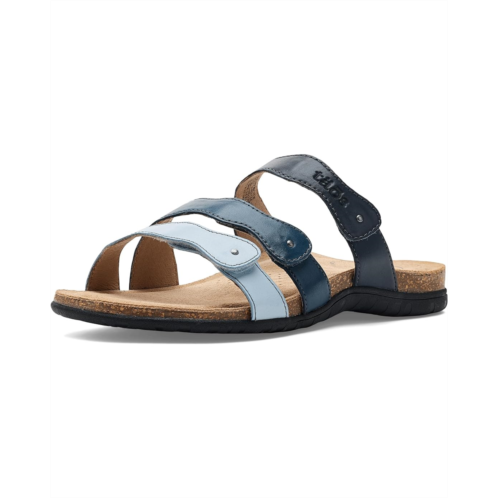- Add these Taos Footwear Scribble sandals to the top of your must-have list. They feature three multicolor adjustable leather straps for a custom fit that stands out. Inside, a signature polyurethane footbed lined with premium suede provides exceptional arch support, while the ethylene vinyl acetate midsole delivers lightweight, all-day comfort. They are made of a leather upper, a cork insole, and a leather lining. These slide sandals offer arch & metatarsal support. Perfect for the woman who craves versatile style and serious comfort, they are the sandals that are as fun as they are functional.