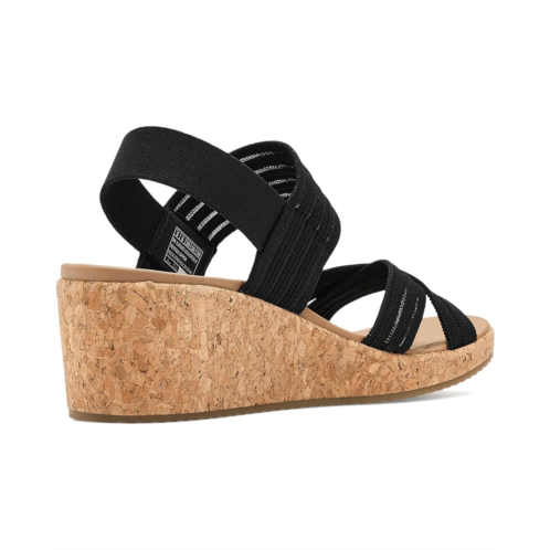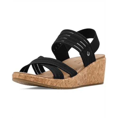 - Monomesh knit cross band sandal and absolute comfort combine in SKECHERS ARCHFIT BEVERLEE 2.0 - BALI VIBES. This strappy style wedge sandal has been granted the APMA Seal of Acceptance and features a faux leather upper with an Arch Fitfootbed. This pair of footwear features open round toe, slingback sandal with stretchy heel strap, SKECHERS and Arch Fit logo details, and wedge heels.