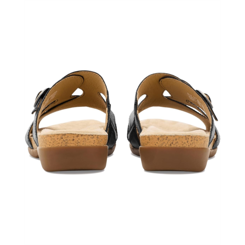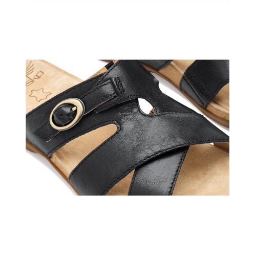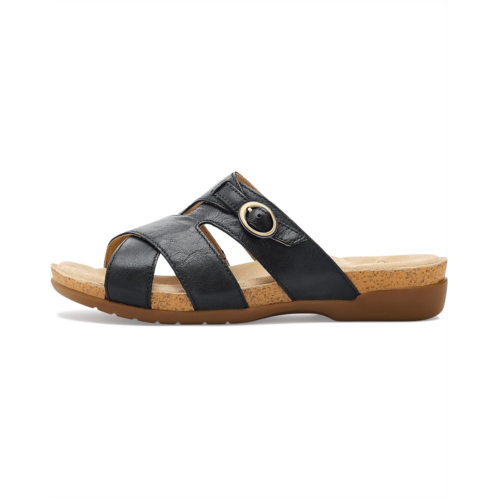 - The Dansko Regan slide sandal offers her a unique strap pattern on a proven Roma cork midsole, with added comfort from a notably soft and cloud-like suede-lined footbed. Crafted from leather upper, lining, and contoured dual-density ethylene vinyl acetate for full foot support, this pair of sandals features open round toe, strappy upper design, slip-on style, and buckle detailing.