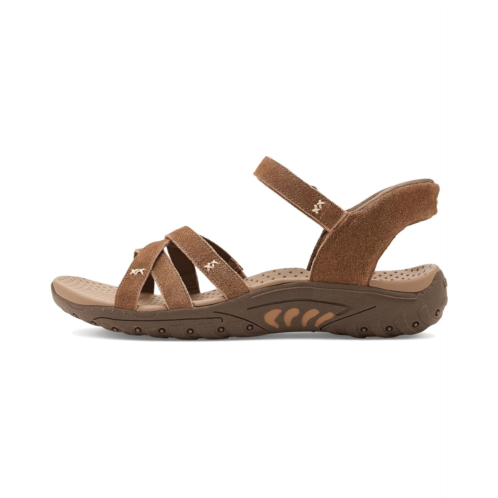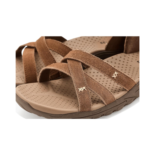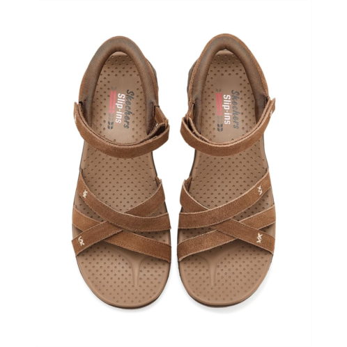 - Simply step into the season with effortless warm weather comfort wearing the SKECHERS Reggae - Natural Poise Hands Free Slip-Ins sandals. These slip-on sandals feature a strappy cross-straps suede upper, Skechers Hands Free Slip-ins back heel, and a Yoga Foam cushioned comfort footbed. The lightweight, flexible, shock-absorbing Reggae midsole ensures a cushioned ride. These strappy sandals are made of a foam insole and a linen lining.
